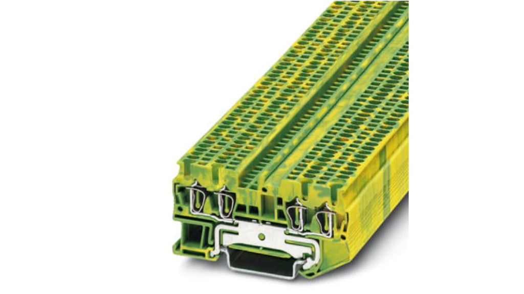 Morsettiera passante per collegamenti elettrici, terminali a molla a quattro fili, colore verde/giallo, utilizzo come distributore di potenza compatto, collegamento doppio per quattro cavi su un potenziale, compatibile con sistemi a ponte a innesto FBS per variazioni di distribuzione dell'alimentazione, omologazioni UL/CUL, serie ST 1.5-QUATTRO-PE, cavo CSA 1.5mm², compatibile con AWG 28 a 16.