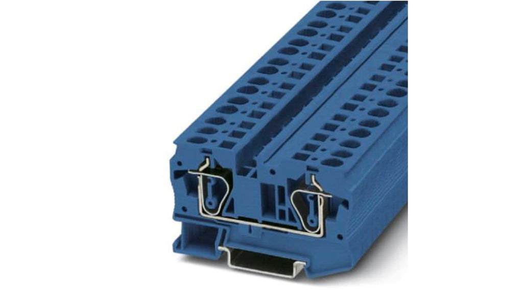 Morsettiera passante per guida DIN, livello singolo, corrente nominale 41A, tensione nominale 1 kV, colore blu. Terminazione a morsetto a molla, accetta cavi da 0,2 a 10 mm² e 24 a 8 AWG. Realizzata in poliammide resistente, contatti in rame. Temperature d'esercizio da -60 a 85 gradi Celsius. Compatibile con guide DIN NS 35/7.5 e NS 35/15. Certificata KEMA 00ATEX2052. Codice costruttore 3031490.