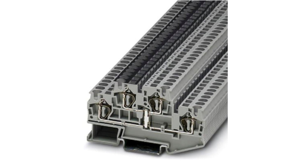 Morsettiera per guida DIN, livello doppio, corrente nominale 30A, tensione nominale 500 V, terminazione a morsetto a molla, colore grigio, compatibile con AWG 28 a 10, serie TB, modello STTB 4-PV.