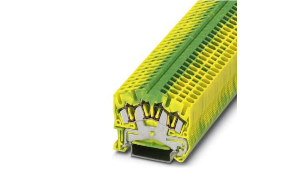 Morsettiera per guida DIN, livello singolo, colore verde/giallo, serie TB. Compatibile con cavi AWG 28 a 12. Terminazione a morsetto a molla. Modello STS 2,5-QUATTRO-PE. Progettata per applicazioni industriali, offre affidabilità e facilità di installazione. Marchio Phoenix Contact, codice costruttore 3031759.