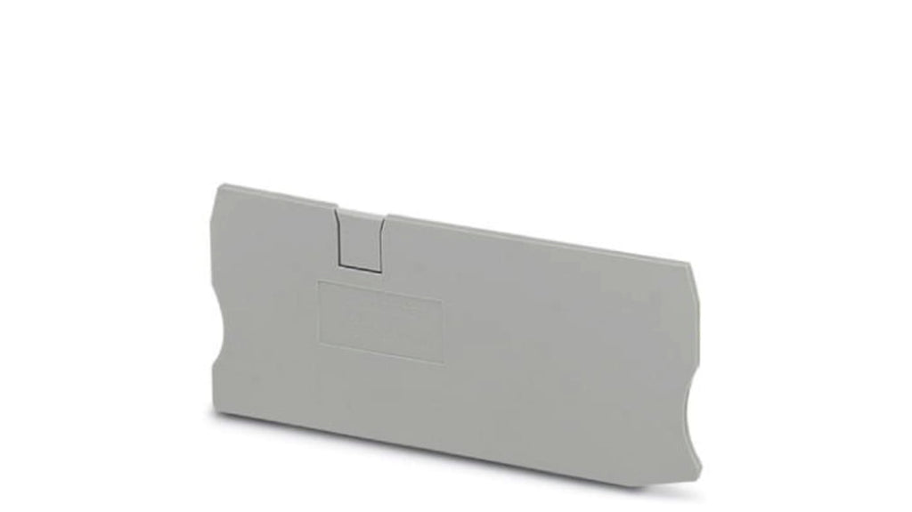 Piastra per coperture terminali della serie D-ST 10-TWIN, compatibile con morsettiera modulare, colore grigio. Prodotto da Phoenix Contact, codice costruttore 3035315. Accessorio professionale per applicazioni industriali, progettato per garantire un'installazione sicura e ordinata.