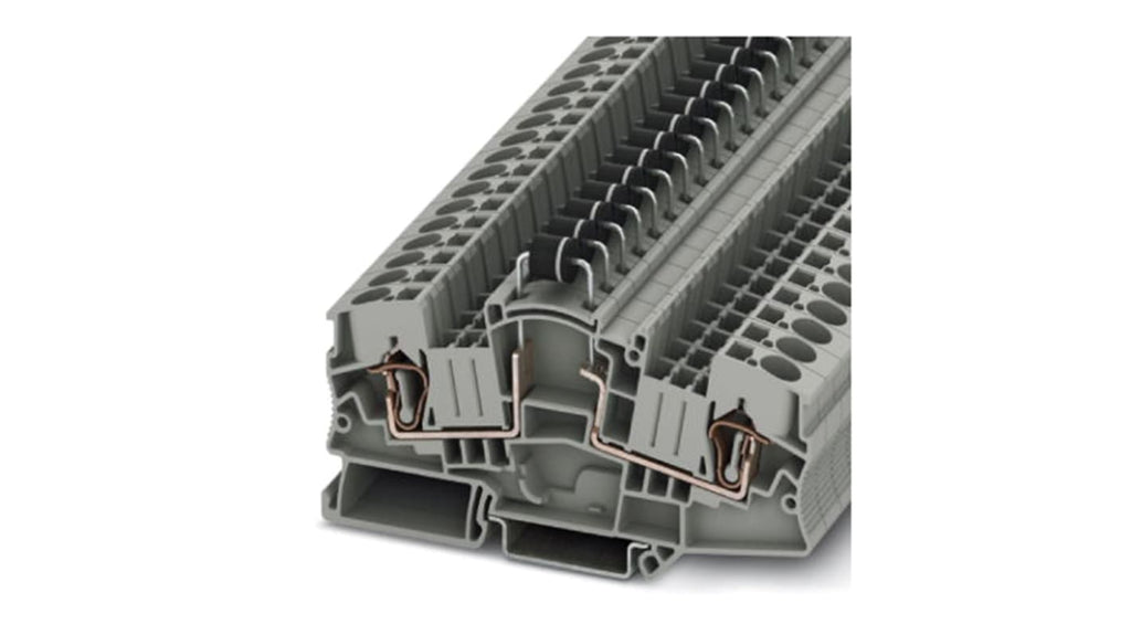 Morsettiera del componente, con diodo P1000M integrato, collegamento con gabbia a molla, sezione cavi 0,2 mm² - 10 mm², AWG 24 - 10, corrente nominale 5A, tensione nominale 1 kV, massima temperatura operativa +130°C, larghezza 8,2 mm, colore grigio, livello singolo, serie STME 6-DIO/L-R HV. Adatta per collegamenti di cavi solari standard fino a 10 mm².