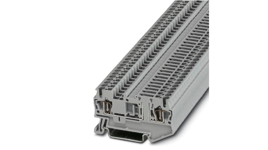 Contatto standard a blocchi per applicazioni industriali. Colore grigio, corrente nominale 16A, tensione nominale 400 V. Terminali di isolamento e terminali di isolamento a lama con profilo identico. Punto di prova parallelo al punto di isolamento per connettori di test da 2,3 mm. Standard IEC 60947-7-1, autorizzazioni UL e CUL. Cavo CSA da 0.08 a 4 mm². Modello ST 2.5-TG.
