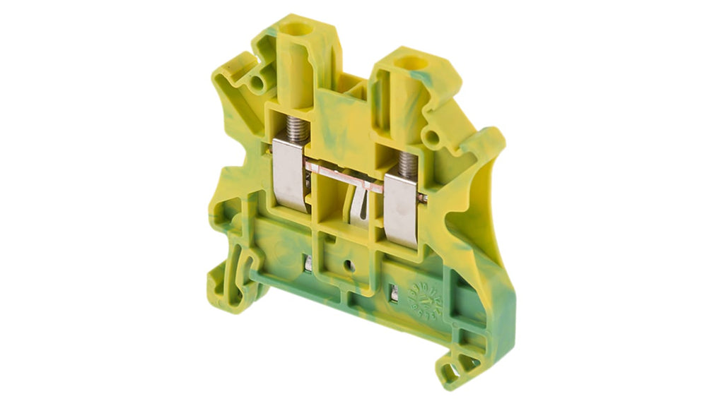 Morsettiera di messa a terra Phoenix Contact, colore verde/giallo, livello singolo, serie UT 4-PE. Tensione nominale 690 V, tensione di picco 8 kV, coppia di serraggio 0,6-0,8 Nm, dissipazione di potenza massima 1,02 W. Compatibile con cavi da 26 a 10 AWG, terminazione a vite, materiale PA. Temperatura operativa da -60 a +110 gradi Celsius, certificazione ATEX per aree pericolose. Codice costruttore 3044128.
