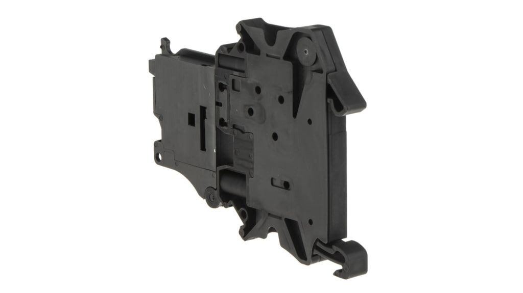 Morsettiera per guida DIN con fusibile, colore nero, livello singolo, corrente nominale 6.3A, tensione nominale 500V, passo 6.2mm, terminazione a vite, compatibile con fusibili G 5x20, accetta fili da 26 a 10 AWG, materiale in poliammide, temperatura operativa da -50 a +110 gradi, standard CSA e cULus. Design modulare per pannelli di controllo personalizzati, collegamenti di prova su entrambi i lati.