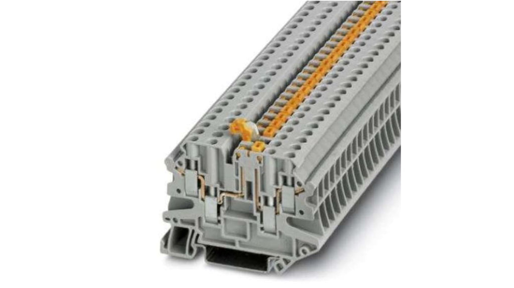 Morsettiera di scollegamento a lama, corrente nominale 20A, tensione nominale 500V, sezione cavo 0,14-6 mm², materiale isolante PA, colore grigio, collegamento a vite, grado di inquinamento 3, categoria di sovratensione III, modello UT 4-QUATTRO-MT P/P, compatibile con AWG 26-10.