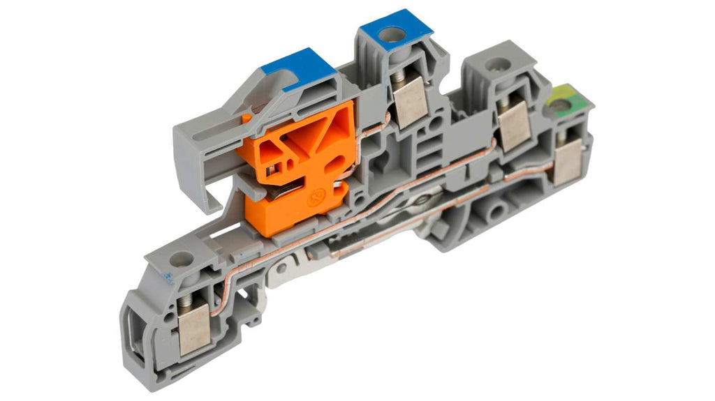 Morsettiera di messa a terra Phoenix Contact, 4 vie, guida DIN, corrente nominale 38 A, capacità fino a 47 A con conduttore 10 mm2, compatibile con conduttori rigidi e flessibili da 0,2 a 10 mm2 (24-8 AWG), contenitore in PA grigio, collegamenti a vite, intervallo di temperatura da -60 a +110 gradi, progettata per installazioni in spazi ristretti. Codice costruttore 3076039.