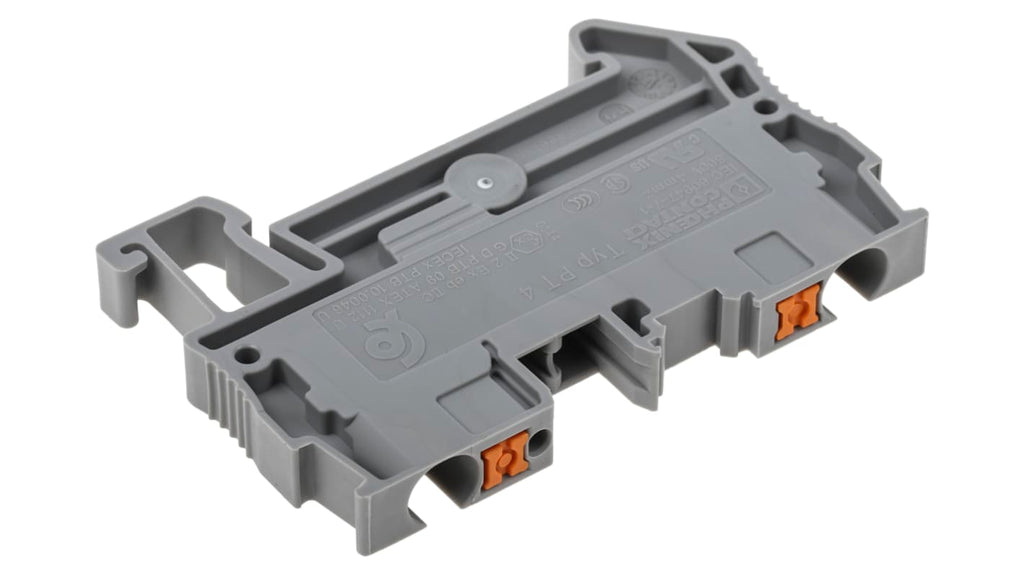 Morsettiera passante Phoenix Contact, colore grigio, livello singolo, corrente nominale 32 A, tensione nominale 800 V, metodo di collegamento a innesto, cavo CSA 0,2-6 mm², temperatura operativa da -60 a +110 gradi Celsius, certificazione ATEX, standard soddisfatti ATEX, CCC, CSA, cULus, EAC Ex, IECEx, UL, dimensioni 56 x 6,2 x 35,3 mm, montaggio su guida DIN.