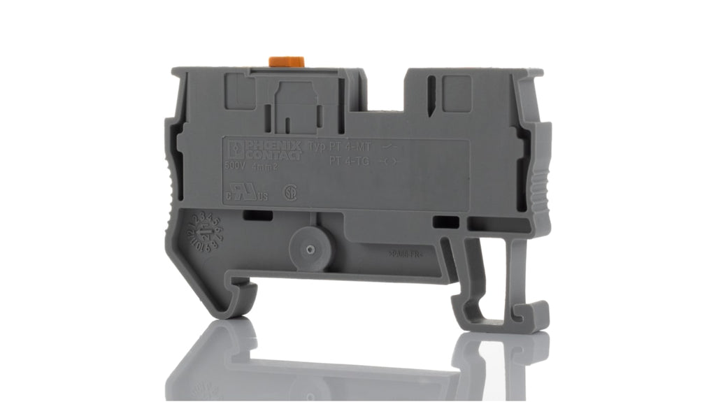 Contatto standard a blocchi Phoenix Contact, morsettiera di scollegamento a coltello, colore grigio, livello singolo, corrente nominale 20A, tensione nominale 400V, terminazione a inserzione, compatibile con cavi da 24 a 10AWG, materiale PA, passo 6.2mm, temperatura operativa da -60 a +105 gradi Celsius, montaggio su guida DIN, standard CSA, cULus, EAC, REACH, codice costruttore 3211933.