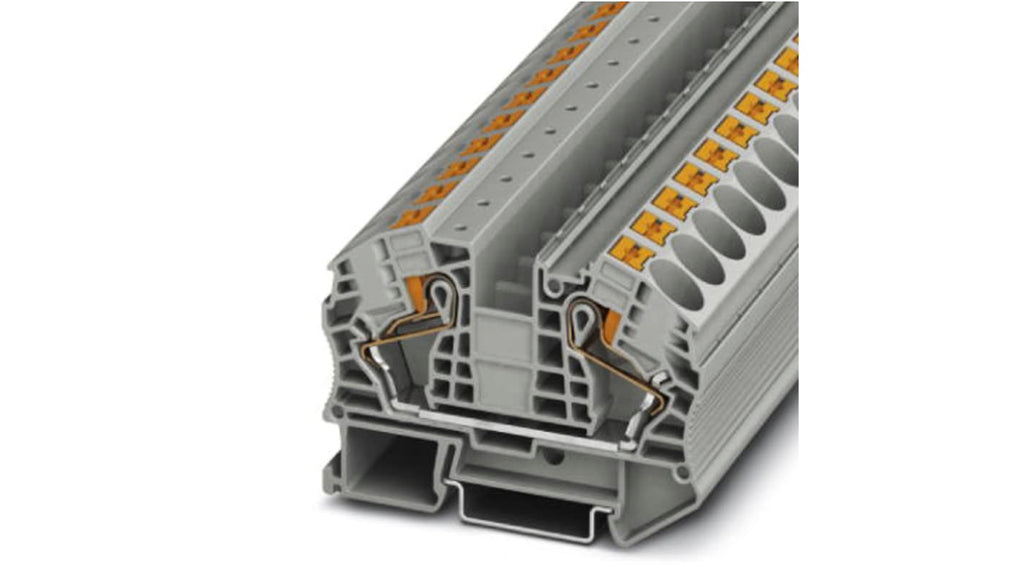 Morsettiera passante Phoenix Contact, livello singolo, corrente nominale 90 A, tensione nominale 1 kV, sezione conduttore 0,5 mm² - 25 mm², terminazione a innesto, montaggio su guide DIN NS 35/7,5 e NS 35/15, larghezza 12,2 mm, colore grigio, certificazione UL classe V0, compatibile con conduttori intrecciati e solidi, conforme agli standard IEC 60947-7-1. Codice costruttore 3212138.