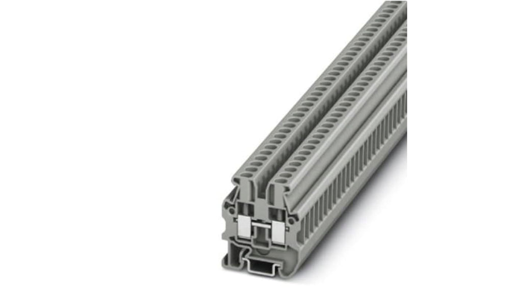 Morsettiera passante miniaturizzata per guida DIN, serie MUT 2,5, colore grigio, livello singolo, corrente nominale 24A, tensione nominale 500V. Terminali a vite, compatibile con conduttori da 0,2 a 4 mm², lunghezza di spelafili 9 mm. Materiale contenitore in poliammide, resistenza agli urti conforme a EN 50155, certificazione ATEX e IECEx, temperatura operativa da -60°C a +110°C. Dimensioni 5,2 mm di larghezza. Codice costruttore 3248030.