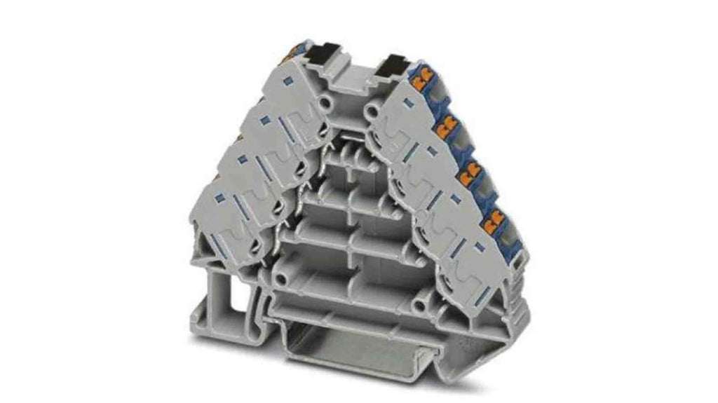 Blocco di distribuzione Phoenix Contact, 1 via, corrente nominale 17,5 A, tensione nominale 250 V, metodo di collegamento a innesto, dimensioni 8,3 mm x 64 mm, materiale custodia poliammide, protezione IP20, dimensione cavo 14-26 AWG, cavo CSA 2,5 mm², colore grigio. Non fa parte della gamma "complete Line".