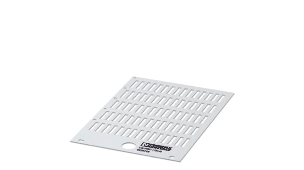 Siglacavo per etichettatura Phoenix Contact, modello UniSheet US-WMT, progettato per l'uso con collari di marcatura PATG/PATO, protegge il siglacavo dalla contaminazione. Compatibile con il sistema THERMOMARK LINE per etichettatura di morsettiere e conduttori. Accessorio per morsettiera modulare, serie US-WMT.