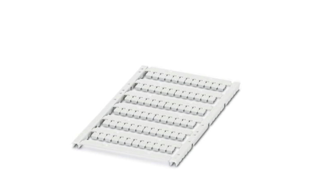 Segnacavo per morsetti Phoenix Contact, codice costruttore 829237. Accessorio per etichettatura di morsettiere modulari, compatibile con la serie UCT1-TMF 5. Progettato per utilizzo con stampanti a trasferimento termico della linea THERMOMARK, offre una soluzione rapida e semplice per identificazione e organizzazione.