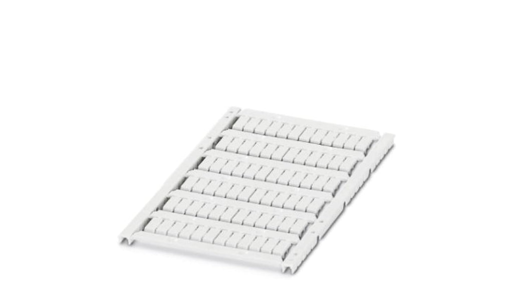 Segnacavo per morsetti Phoenix Contact, codice costruttore 829482. Accessorio per etichettatura di morsettiere e conduttori, compatibile con morsettiera modulare serie UCT1-TM 5. Progettato per l'uso con stampanti a trasferimento termico THERMOMARK CARD e THERMOMARK ROLL. Soluzione efficace per una rapida identificazione in ambito industriale.