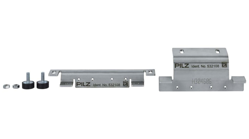 Staffa di montaggio interruttore per Porta oscillante, codice costruttore 532108, marchio Pilz. Attuatore PSEN ma1.3-08 VA, interruttore di sicurezza con cavo (5 m/10 m), 2 contatti di sicurezza, 1 contatto ausiliario, funzionamento a 24 VDC, LED di stato, realizzato in acciaio inox. Accessori inclusi: fermo staffa, progettato per uso con porta oscillante.