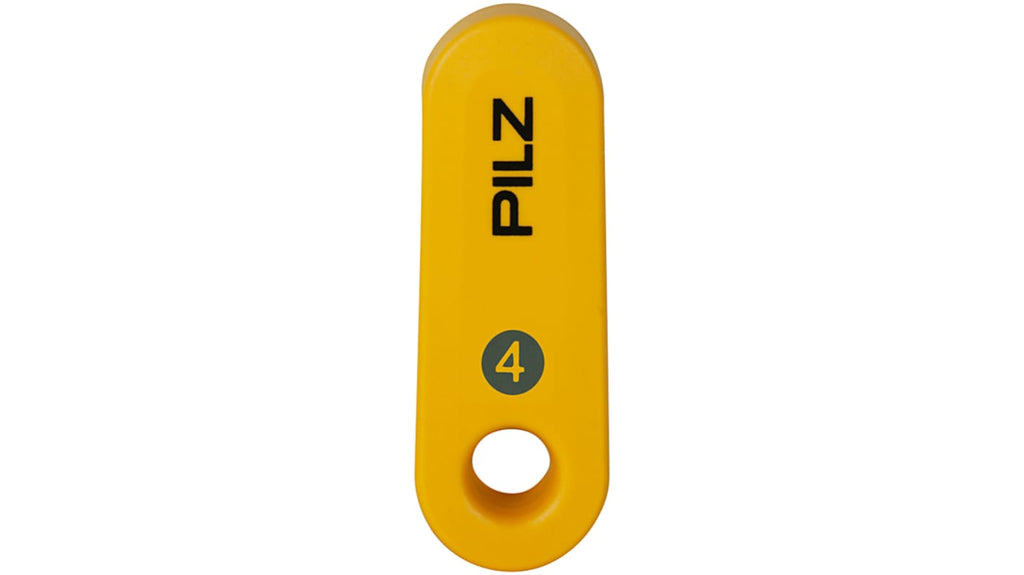 Chiave per interruttore a chiave, per uso con PSEN cs4.1p, codice costruttore 541184, marchio Pilz. Chiave a transponder con marcatura grigia 4, realizzata in materiale plastico resistente, include accessorio adattatore per chiavi. Omologazione CE e UKCA, alto livello di codifica secondo ISO 14119.