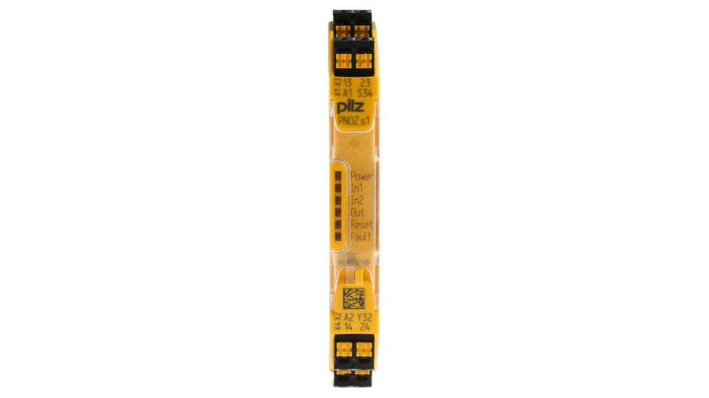 Relè di sicurezza a 2 canali, tensione di alimentazione 24V cc, 2 contatti di sicurezza, funzione di reset automatico e manuale, alloggiamento in lega di alluminio, cappucci terminali in zinco pressofuso, resistenza agli urti, larghezza 12.5mm, profondità 120mm, lunghezza 98mm, categoria di sicurezza ISO 13849-1 3, PL ISO 13849-1 c, tipo di terminale morsetto a gabbia.