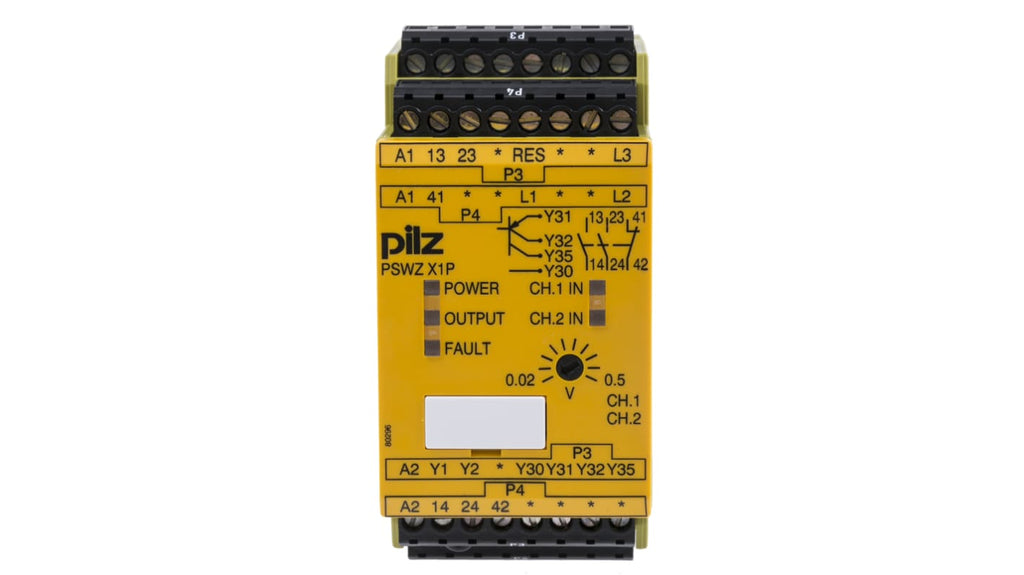 Relè di sicurezza con tensione di alimentazione 24 a 240V ca/cc, 1 o 2 canali, 2 contatti di sicurezza, contatti ausiliari 1, categoria di sicurezza ISO 13849-1 3, livello di prestazioni e, SIL IEC 61508 3, tipo di terminale a vite, dimensioni 121mm x 45mm x 94mm, serie PSWZ X1P, codice costruttore 777949.