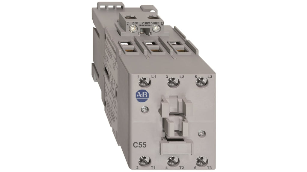 Contattore Rockwell Automation, serie 100-C, 3 poli, 3 NA, 55 A, 34 kW, bobina 230 V c.a., tensione nominale contatto 690 V c.a., protezione IP2X, montaggio su guida DIN 35 mm, montaggio anteriore e laterale dei contatti ausiliari, moduli di controllo salvaspazio, conformità RoHs, progettato per controllare motori e carichi, basso consumo energetico, soppressione sovratensioni incorporata.