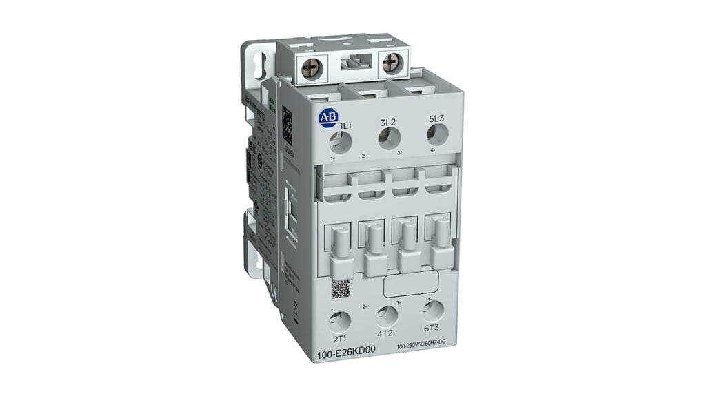 Contattore Direct on Line Rockwell Automation, serie 100-E Contactors, 3 poli, 1NC, corrente nominale 38 A, tensione bobina 100 a 250 V c.a., bobina elettronica con soppressione delle sovratensioni incorporata, interfaccia PLC opzionale su E116 E370. Modello 100-E38KD00.