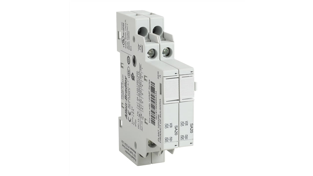 Contatto ausiliario Rockwell Automation, 2 contatti, configurazione 2NC, montaggio laterale, serie 140MP. Aggiunge 9 mm alla larghezza dello starter per motore manuale, utilizza barre di distribuzione compatte con distanza di 54 mm. Codice costruttore 140MP-A-ASA02.