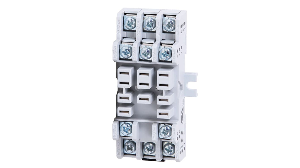 Zoccolo per relè a 11 lame, compatibile con relè 700-HB, tensione 300V, montaggio su guida DIN o a pannello, morsetto a vite, serie 700-HN.