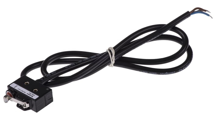 Microinterruttore SPDT pre-cablato, Saia-Burgess, corrente nominale 10 A a 250 V c.a., grado di protezione IP67, corpo in metallo, contatti in argento, vita meccanica 10^6 operazioni, temperatura operativa -40 a +125 gradi Celsius, montaggio con foro passante, kit di messa a terra incluso, dimensioni 21 mm x 29 mm x 53 mm, autorizzato UL e CSA.