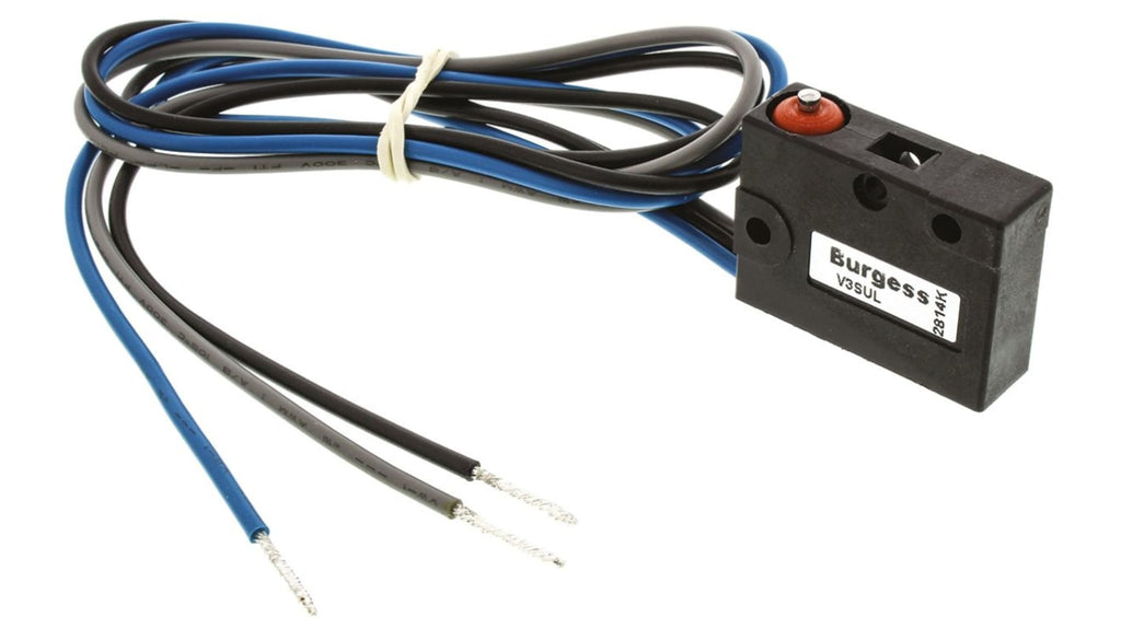 Microinterruttore Saia-Burgess SPDT, corrente nominale 5 A a 250 V c.a., grado di protezione IP67, pre-cablato con cavi di 500 mm. Attuatore a stantuffo, materiali contatto in argento e telaio in nylon rinforzato in fibra di vetro. Range di temperatura operativa da -40 a +85 gradi Celsius, durata meccanica 10^6 operazioni, forza di azionamento 3,9 N, forza di rilascio 1,1 N. Certificazioni UL e CSA.
