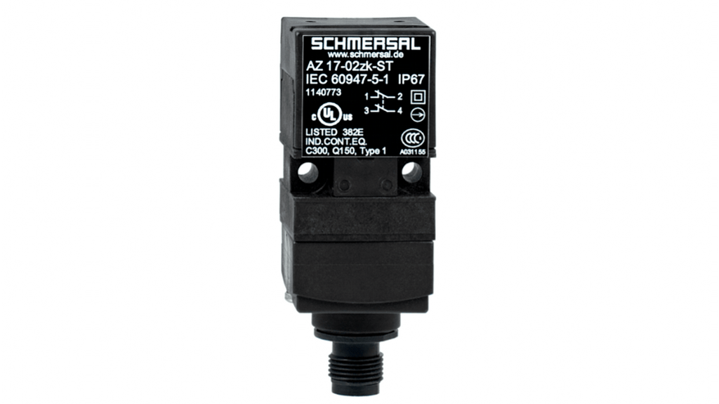 Interruttore di interblocco di sicurezza a chiave Schmersal, 1NC/1NA, attuatore incluso, contatti di sicurezza 1, contenitore in materiale termoplastico rinforzato con fibra di vetro, codifica universale, insensibile allo sporco, doppio isolamento, serie AZ 17.