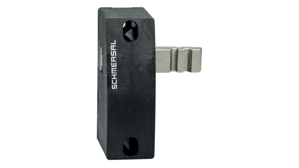 Attuatore per interruttore di sicurezza, per uso con interruttore di sicurezza a solenoide AZM200, altezza 115mm, dimensioni 50x84x115mm, peso 240g, materiale contenitore Grivory, materiale attuatore zinco pressofuso, forza di serraggio 2000N, offset fino a 5mm per installazione semplice, durata meccanica di almeno un milione di operazioni, resistente a urti e corrosione, adatto per ambienti industriali difficili.