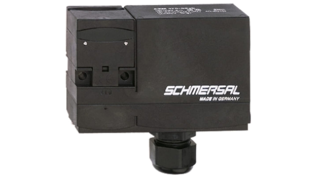 Interruttore di interblocco a solenoide, Schmersal AZM 170, 230V ca, IP67. Potenza di blocco 1000 N, contatti di sicurezza NC, dimensioni 30 x 90 x 84 mm, materiale plastico autoestinguente, temperatura d'esercizio -25 a +60 gradi, ingresso cavo M20 x 1,5. Standard soddisfatti: BG, CE, cULus, EN 60947-5-1, EN ISO 13849-1, IEC/EN 60529. Attuatore non incluso.