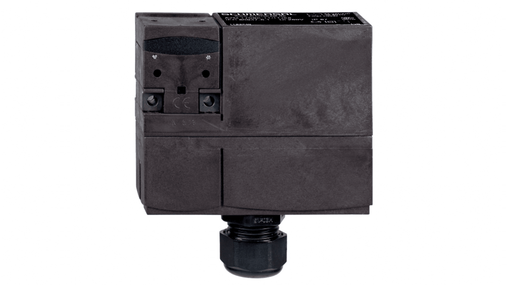 Interruttore di interblocco a solenoide. Marchio Schmersal, modello AZM 170. Tensione di alimentazione 24V ca/cc. Configurazione 1NC/1NA. Contenitore in termoplastico, design compatto, doppia isolamento. Lunga durata, elevata forza di tenuta. Attuatore incluso. Protezione contro il blocco errato.