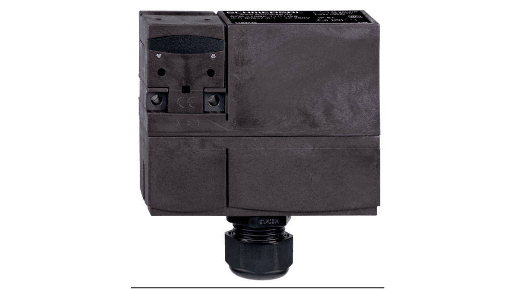Interruttore di interblocco a solenoide. Tensione di alimentazione 24V ca/cc, configurazione 1NC/1NA, attuatore incluso. Design compatto, contenitore termoplastico, doppiamente isolato. Lunga durata, elevata forza di tenuta, protezione contro il blocco errato. Marchio Schmersal, serie AZM 170. Codice costruttore AZM170SK-11ZRKA-24VAC/DC.
