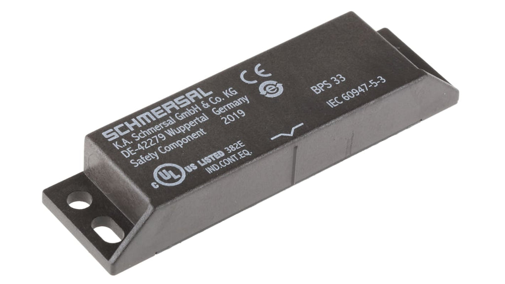 Attuatore magnetico Schmersal, IP67, codice BPS 33, tensione massima 120 V c.a./c.c., dimensioni 25 mm x 88 mm x 13 mm, materiale custodia plastica, tipo di attuatore magnetico, protezione contro polvere e acqua fino a 1 metro. Conforme alla norma EN 60947-5-3. Include viti antimanomissione per montaggio sicuro. Utilizzabile con interruttore di sicurezza BNS33.