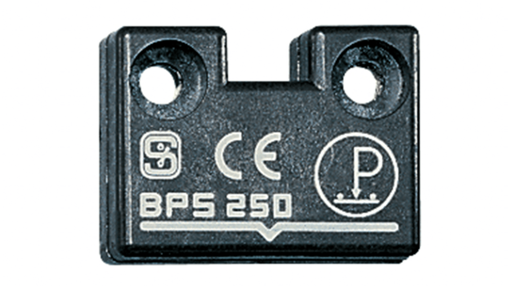 Montaggio interruttori interblocco di sicurezza, codice costruttore BPS250, marchio Schmersal. Sensore di sicurezza magnetico in plastica, peso lordo 15 g, contenitore termoplastico, accessori inclusi.
