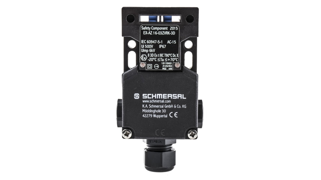 Interruttore di interblocco di sicurezza, 3NC/1NA, a chiave, 230V, 2,5A, grado di protezione IP67, materiale termoplastico rinforzato con fibra di vetro, dimensioni 90x52x30mm, temperatura operativa da -20 a +70 gradi Celsius, certificazione ATEX, sistema a rulli brevettato, doppio isolamento, 3 ingressi cavo M20 x 1,5, contatti in argento per elevata conduttività.
