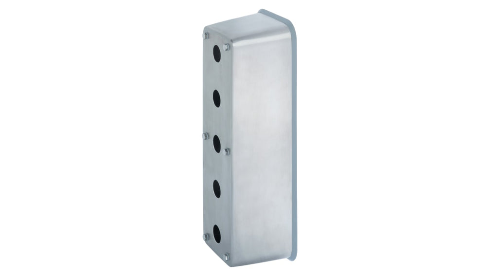 Contenitore Schmersal, alloggiamento vuoto in materiale V4A, versione con 6 fori di montaggio, diametro foro 22,3 mm, colore grigio chiaro, certificazione TUV, certificazione IEC Ex.