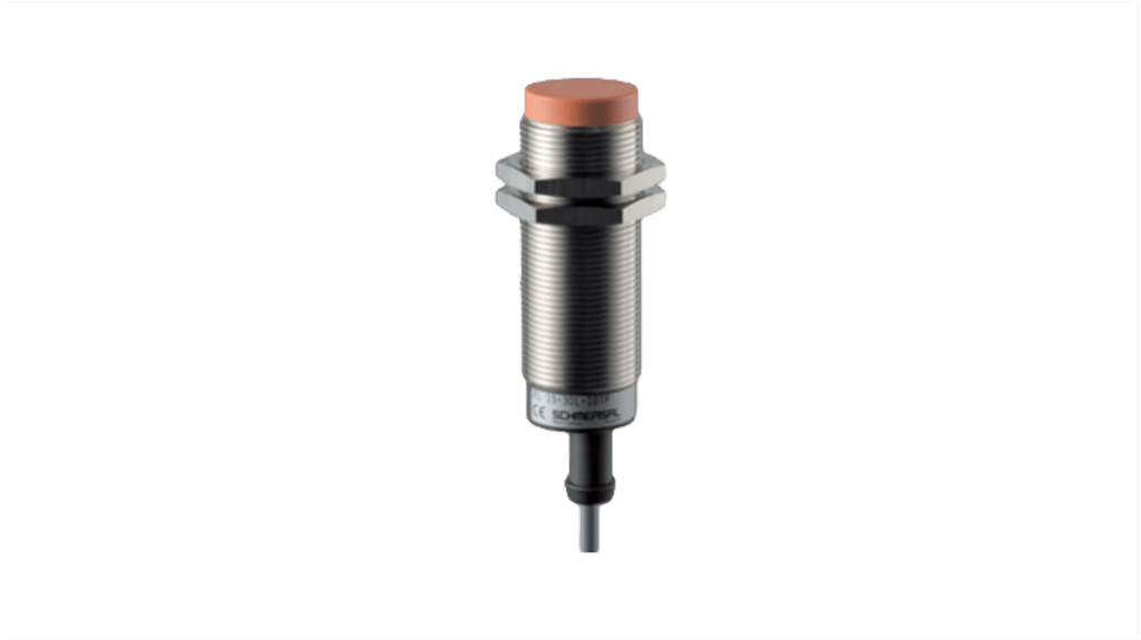 Sensore di prossimità induttivo Schmersal, cilindrico, M30 x 1.5, PNP, tensione di alimentazione 10-30 V c.c., corrente di commutazione 200 mA, gamma di rilevamento 15 mm, grado di protezione IP67, temperatura operativa da -25 a +70 gradi Celsius, materiale custodia in ottone, frequenza di commutazione 100 Hz, protezione da sovraccarico e corto circuito, protezione da inversione di polarità, conforme agli standard IEC/EN 60947-5-2.