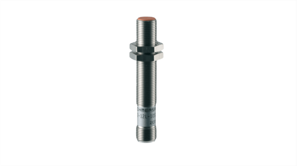 Sensore di prossimità induttivo cilindrico, PNP, M12 x 1, rilevamento 2 mm, tensione di alimentazione 10-30 V CC, custodia metallica in ottone nichelato, grado di protezione IP67, temperatura ambiente da -25 a +70 gradi Celsius, connettore. Modello IFL 2-12L-01STP, marchio Schmersal.