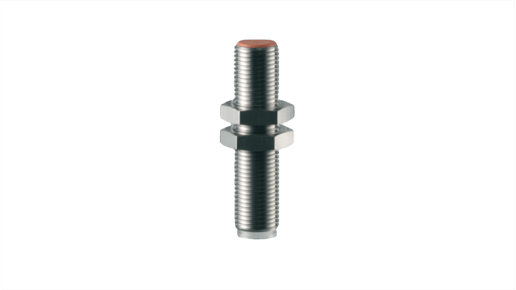 Sensore di prossimità induttivo cilindrico, tecnologia PNP, filettatura M12 x 1, gamma di rilevamento 2 mm, tensione di alimentazione 10 a 30 V CC, custodia metallica in ottone nichelato, grado di protezione IP67, temperatura ambiente da -25 a +70 gradi Celsius. Modello IFL 2-12M-10STP, marchio Schmersal.
