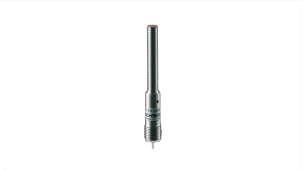 Sensore di prossimità induttivo cilindrico, tecnologia PNP, filettatura M8 x 1, gamma di rilevamento 2 mm, tensione di alimentazione 10-30 V CC, custodia in ottone nichelato, grado di protezione IP67, temperatura ambiente da -25 a +70 gradi Celsius, configurazione a 3 fili. Marchio Schmersal, serie IFL.