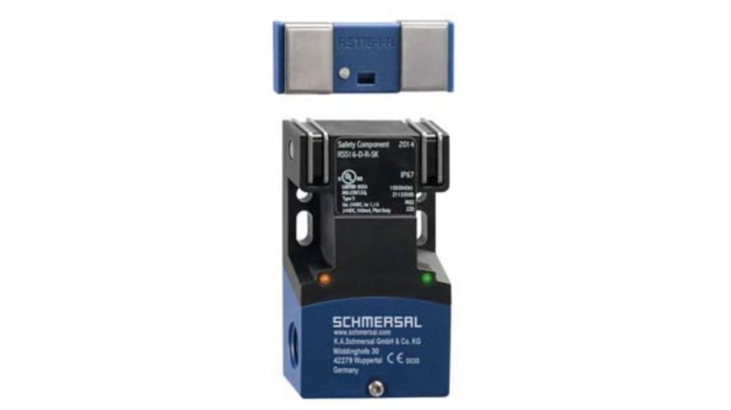 Interruttore di sicurezza senza contatto RFID, tensione di alimentazione 20,4-26,4 V cc, corrente fornita 2100 mA, tipo di connessione vite, attuatore incluso, distanza di commutazione 15 mm, 12 mm (On), 30 mm (Off), materiale custodia termoplastico rinforzato con fibra di vetro, grado di protezione IP67, dimensioni 91 mm x 52 mm x 30 mm, standard CE, cULus, EAC, TUV.