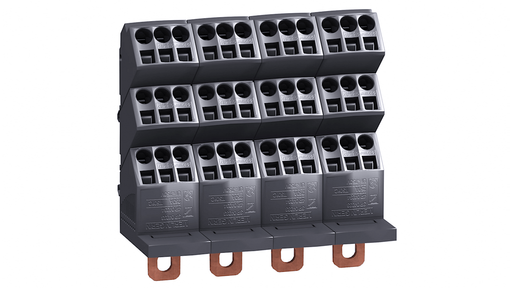 Sezionatore con interruttore, configurazione a quattro poli, tensione d'esercizio nominale 690 V, piastra di montaggio prisma, supporto per montaggio su guida DIN, dimensioni 140 mm x 140 mm x 64 mm. Marchio Schneider Electric, codice costruttore 04034.