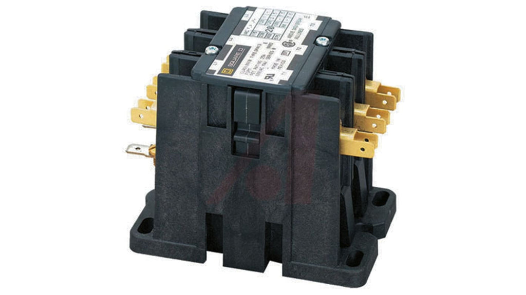 Contattore Schneider Electric, serie DPA, 3 poli, 3 NA, 40 A, bobina 24 V c.a., tensione nominale contatto 600 V c.a., 200000 operazioni a carico nominale, attacco rapido, dimensioni 58.7 mm x 60.2 mm x 76 mm, temperatura operativa da 0°C a +65°C. Moduli di contatti ausiliari a scatto disponibili. Ideale per riscaldamento, aria condizionata, refrigerazione, elaborazione dati e ristorazione.