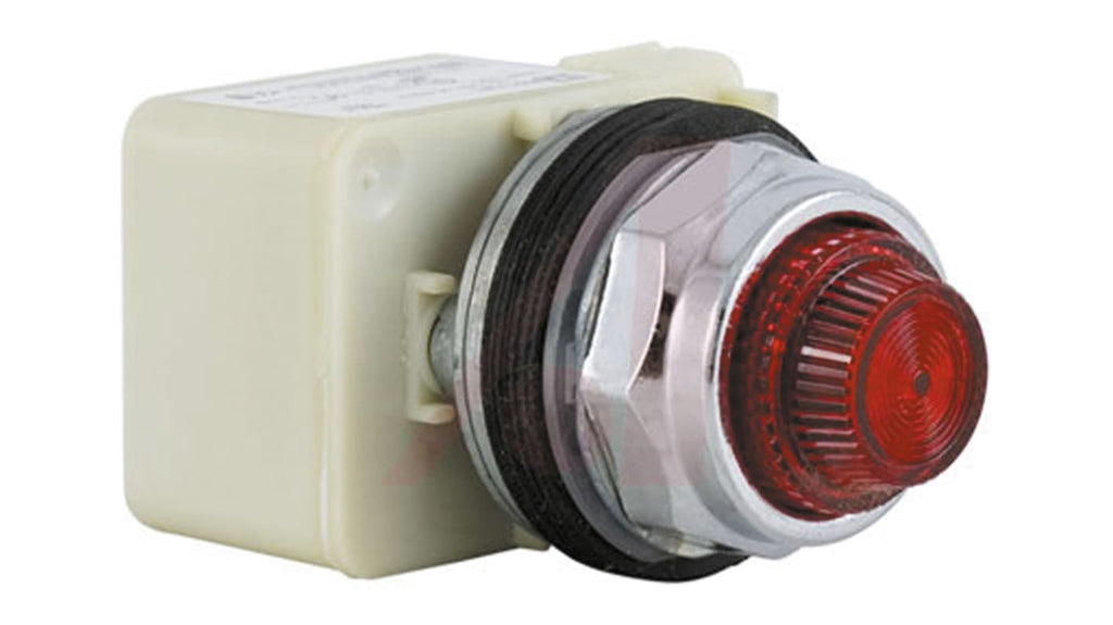 Spia luminosa per impieghi pesanti, montaggio a pannello, serie Harmony 9001K, diametro foro 30 mm, colore rosso, forma rotonda, materiale metallico, protezione IP66, conforme a UL tipi 4, 13/NEMA tipi 4, 13, disponibile con piastre per legenda e tappi di diversi colori. Codice costruttore 9001KP1R31.