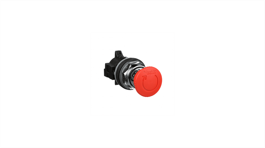 Testina di arresto di emergenza. Grilletto a rotazione per risposta rapida, lunetta in metallo resistente, profilo a fungo rosso per facile identificazione. Grado di protezione IP66. Diametro pulsante 30mm, attuazione a pulsante, tipo di pulsante a fungo. Marchio Schneider Electric, codice costruttore 9001KR16, serie Harmony 9001K.