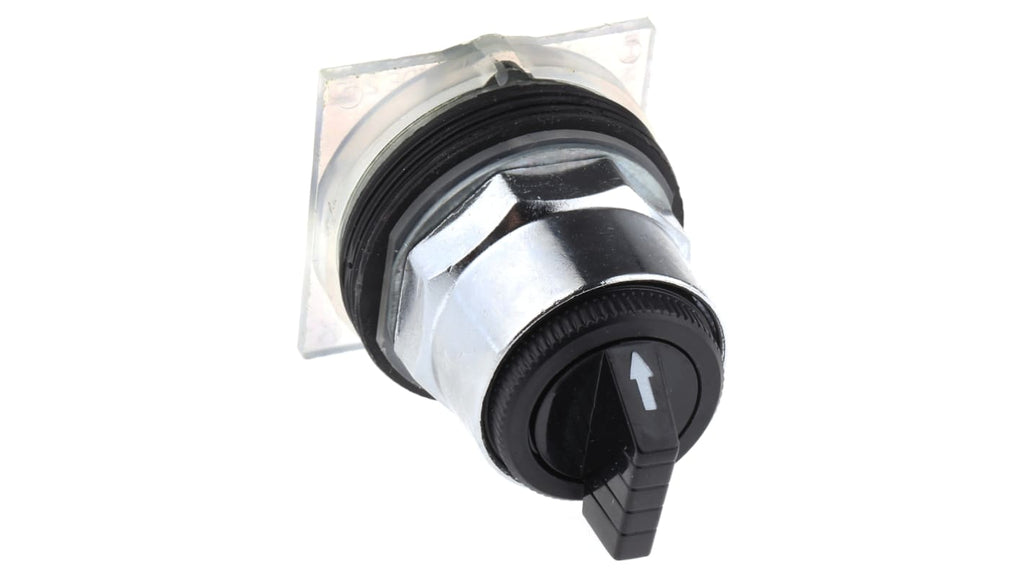 Selettore a 3 posizioni, diametro foro 30mm, impugnatura standard, non illuminato, realizzato in metallo per base e ghiera, manici standard e lunghi in plastica, richiede blocchi di contatti, attivazione con ritorno a molla, conforme a standard IEC 947-1, IEC 947-5-1, IEC 947-5-4, EN 60947-5-1, JIS C 4520 e 852, UL 508, CSA C22-2 n° 14. Codice costruttore 9001KS52B.
