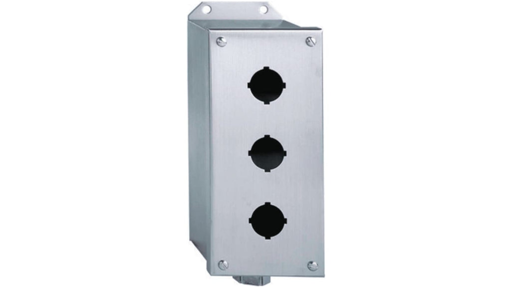 Contenitore per pulsanti in acciaio inox, progettato per unità di comando e controllo della gamma Harmony Style 9, diametro foro 30mm, 1 foro, temperatura operativa da -40 a +70 gradi Celsius, compatibile con serie 9001K e 9001SK, senza marcatura. Codice costruttore 9001KYSS1, marchio Schneider Electric.