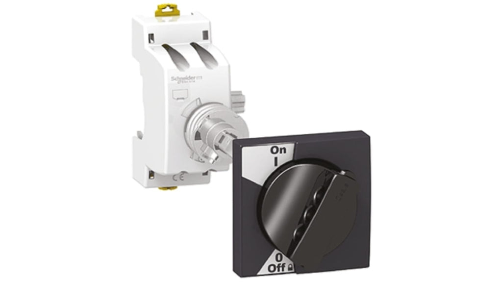 Manopola rotativa Acti9 per iC60, montaggio frontale o laterale, grado di protezione IP55, compatibile con iC60 MCB, iDPN Vigi, ilD MCB, iSW-NA. Prodotto da Schneider Electric, codice costruttore A9A27006. Accessorio per il controllo meccanico dei dispositivi della serie iC60.